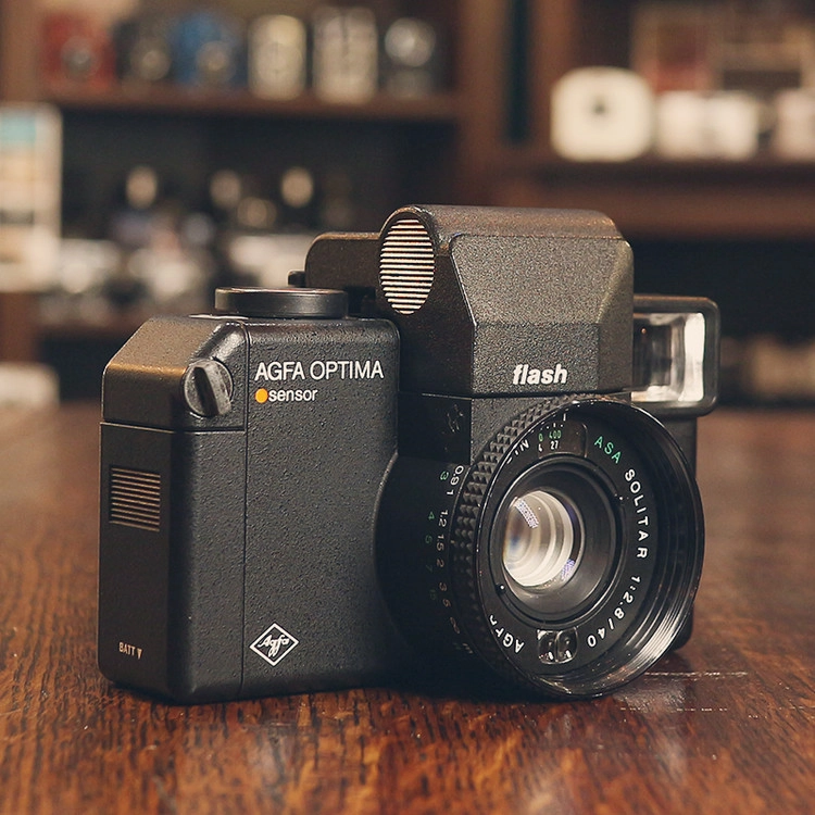 독일의 아그파사에서 출시한 반자동(반수동) 옵티마 시리즈 중에서도 플래시를 달고 있는 모델입니다.