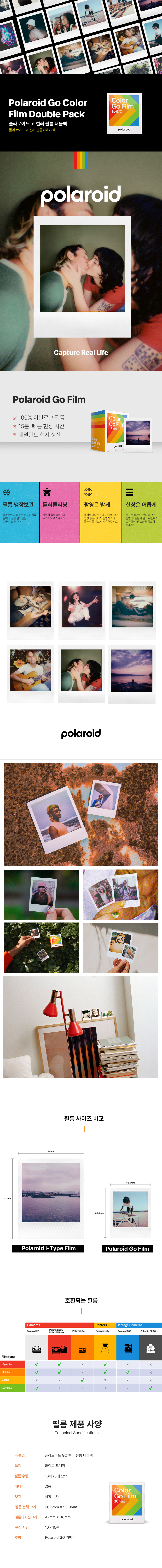 폴라로이드 고 컬러 필름 더블팩 16매 (8매x2팩)