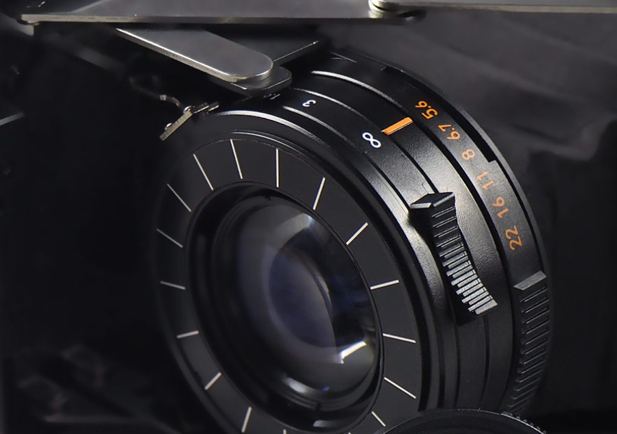 가장 낮은 조리개 값은 f/5.6(35mm 환산 f/2.4)으로, 넓은 필름 포맷과 결합되어 뛰어난 보케 효과를 낼 수 있습니다.